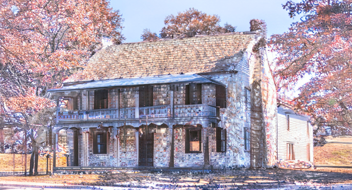 Derived from an original photo of a stone tavern on the Wilderness Road in Smyth County, Virginia.[2]For the original, see “Old Stone Tavern: Smyth County”, Virginia Department of Historic Resources, www.dhr.virginia.gov/historic-registers/086-0002/ accessed 8 January 2026.