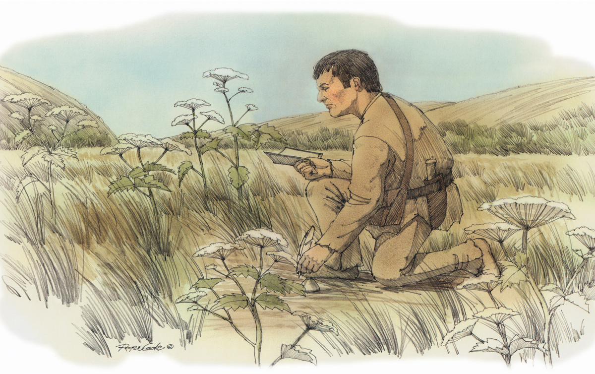 the three young men of the Wollahwollah nation continued with us. in the course of the day I observed them eat the inner part of the young and succulent stem of a large coarse plant with a ternate leaf, the leafets of which are three loabed and covered with a woolly pubersence.