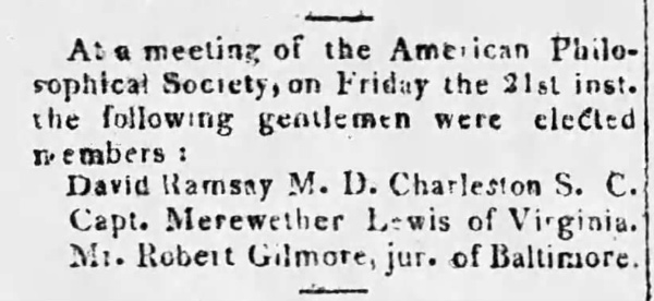 In Philadelphia, Lewis is elected as a member of the American Philosophical Society.