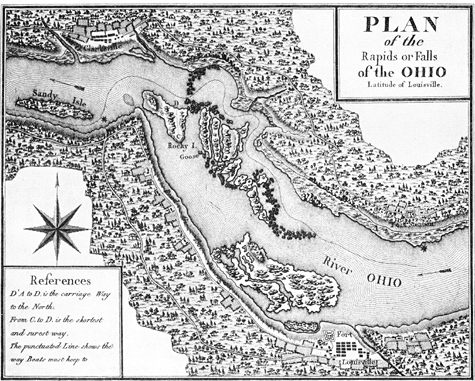 Plan of the Rapids or Falls of the OHIO[1]Victor Collot, A Journey in North America, Containing a survey of the countries watered by the Mississippi, Ohio, Missouri, and other affluing rivers; with exact observations on the course and … Continue reading
