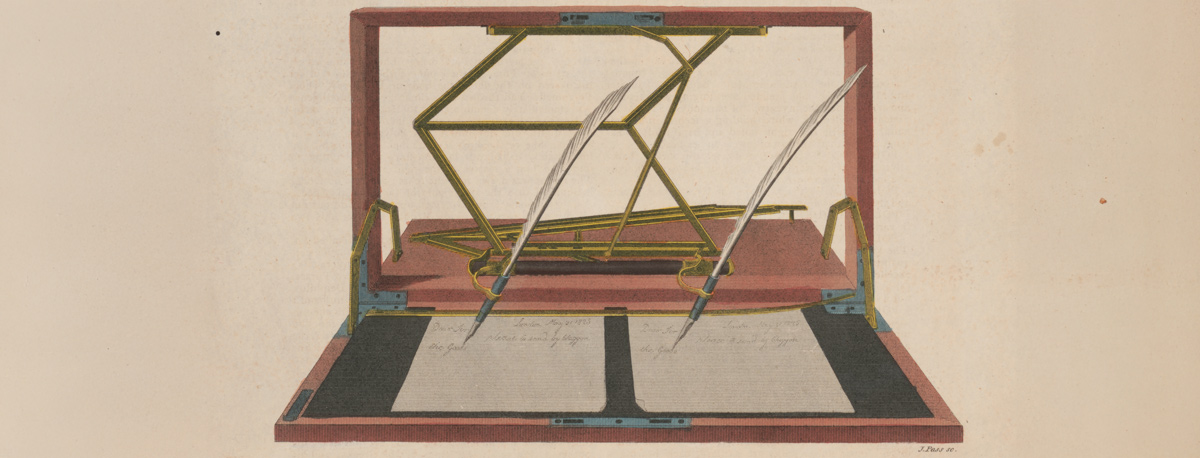 I formerly troubled you with the small polygraph you made for me in order to get it’s parallels rectified, because from some cause which I cannot discover the half dozen lines at the top of the copy are an illegible scribble, while in every other part of the page it performs perfectly well. it still has that defect as you will percieve by writing half a dozen lines at the top of the paper in a small light character. it’s size is so exactly what I prefer, that if I could get this defect removed, I should value it more than any one I have ever tried . . . .