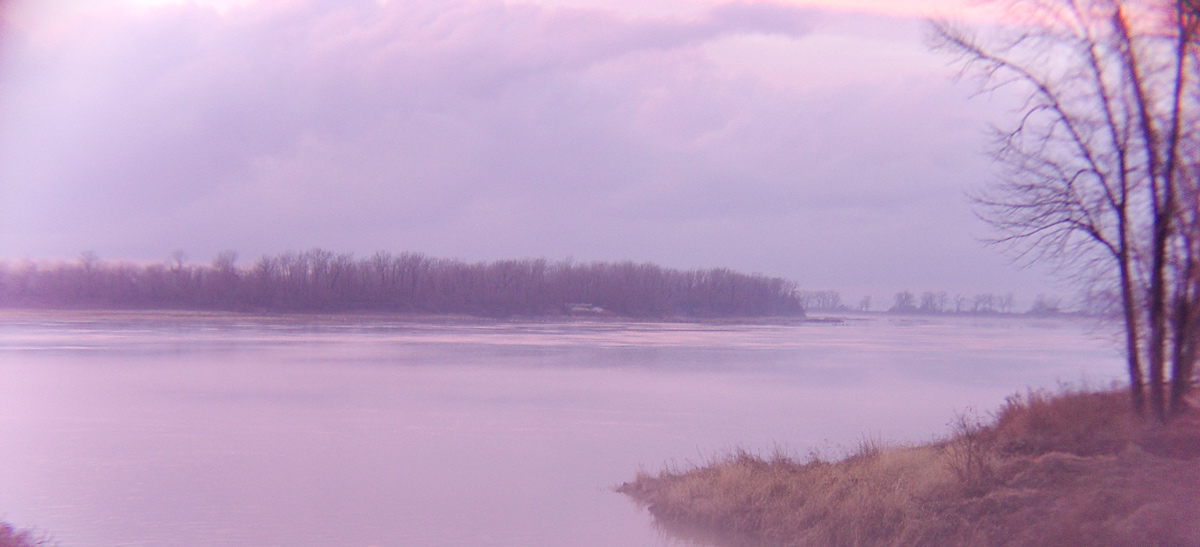Above: The Missouri River enters on the far side of the Mississippi which is flowing right to left. Cahokia Channel enters from the lower edge. The Cahokia Channel diverts Cahokia Creek and flows past today’s reconstruction of Camp River Dubois. The actual camp was near the confluence of the Missouri and Wood rivers. All these channels have since moved considerably. See The Mouth of the Missouri.