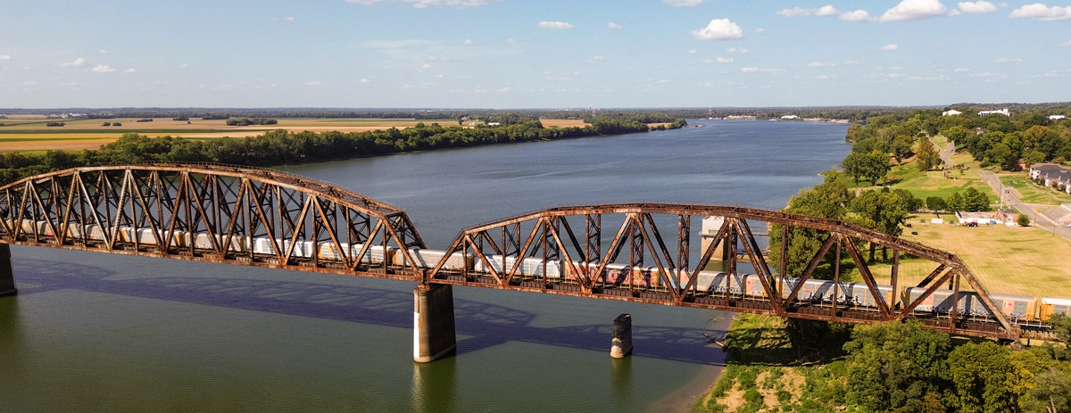 Originally built for the Louisville and Nashville Railroad in 1885, the bridge is now owned by the CSX Transportation.[2]“Henderson Bridge (Ohio River)”, Wikipedia, en.wikipedia.org/wiki/Henderson_Bridge_(Ohio_River), accessed 20 September 2024.