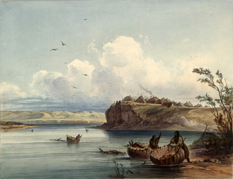 “Set out at Sunrise and proceeded on. When we were opposite the Minitares Grand Village we Saw a number of the Nativs viewing [us]. We directed the Blunderbuses fired Several times, Soon after we Came too at a Croud of the nativs on the bank opposite the Village of the Shoe Indians . . . at which place I saw the principal Chief of the Little Village of the Menitarre & the principal Chief of the Mah-har-has. those people were extreamly pleased to See us. the Chief of the little Village of the Menetarias cried most imoderately, I enquired the Cause and was informed it was for the loss of his Son who had been killed latterly by the Blackfoot Indians. after a delay of a fiew minits I proceeded on.”