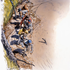 At the mouth of the Sun River, Lewis and his group hunt among 10,000 bison and begin making two bull boats from their hides. Clark’s group paddles down the Beaverhead while Sgt. Pryor herds their horses.